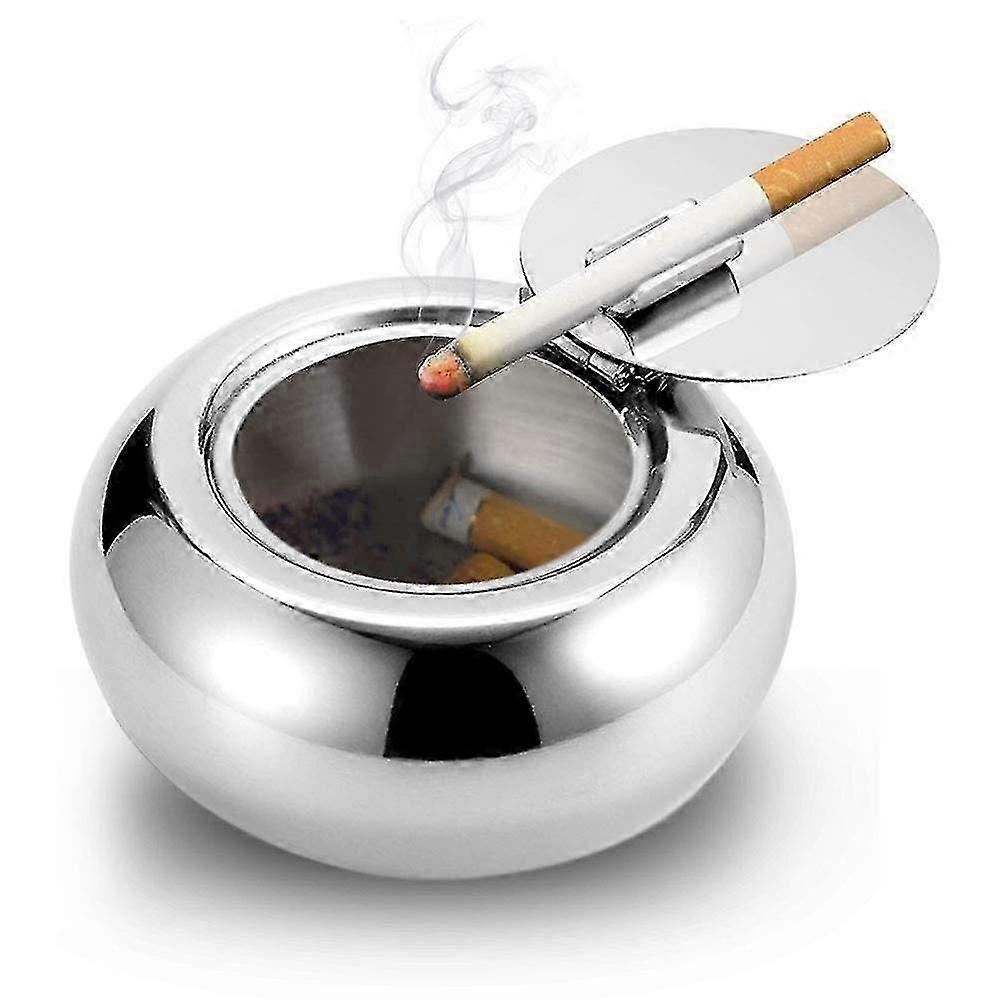Ashtray, Stainless Steel Modern Tabletop Ashtray With Lid, Cigarette Ashtray For Indoor