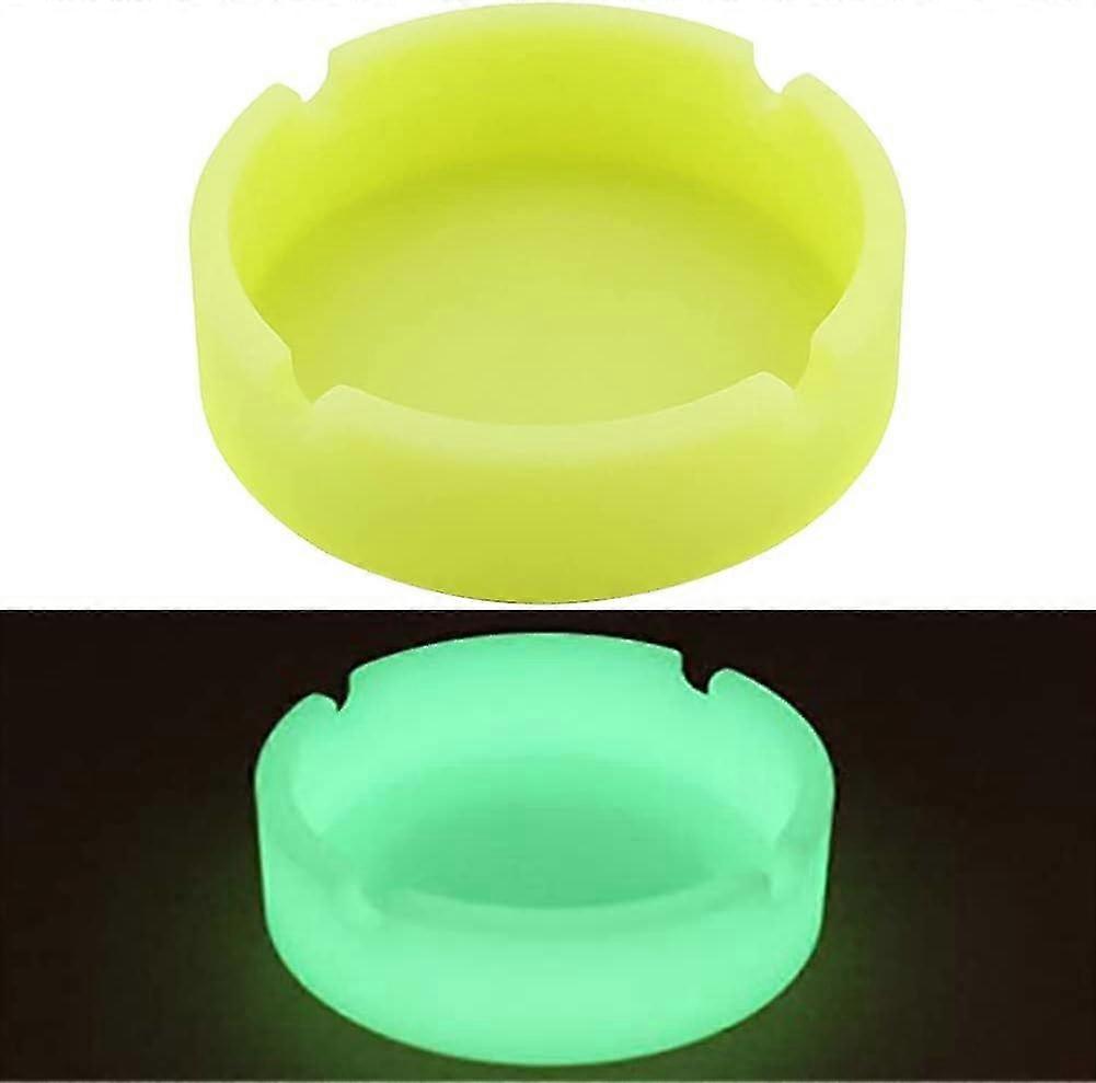 Yellow-fluorescent Ashtray, Fluorescent Silicone Ashtray, Round Fluorescent Shatterproof Soft Silicone Luminous Glow In The Dark, Portable Indoor And