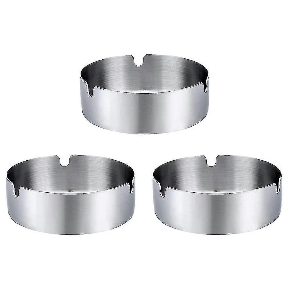 Stainless Steel Ashtray 3 Pcs, Round 10cm Windproof Cigarette Cigar Ashtray Bin Set For Home Office Hotel Restaurant