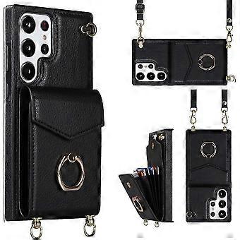 for Samsung Galaxy S24 Minimalist Wallet Case with Ring Kickstand and Shoulder Strap, Shockproof Stylish Protective Cover for Samsung Galaxy