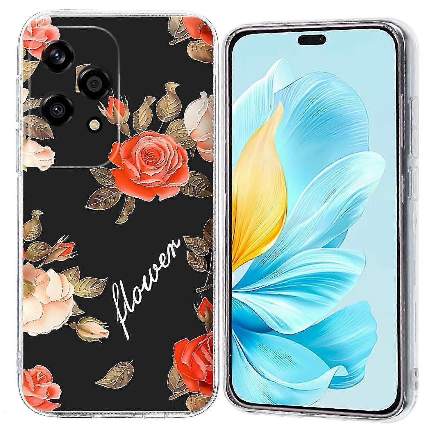 For Honor 200 Lite Case Pattern Printing Shockproof Soft TPU Phone Cover-Black Background Flowers