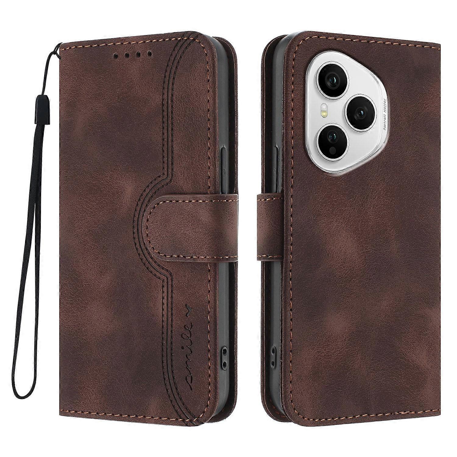 For Honor 400 Pro 5G (Global) Leather Case Wallet Stand Smile Imprinted Phone Cover with Strap