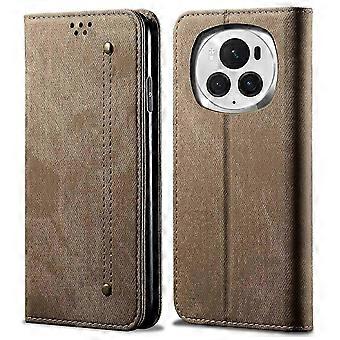 For Honor Magic6 Pro 5G Leather Case Wallet Phone Cover Jeans Cloth Texture -
