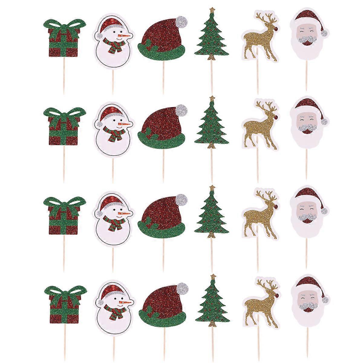 Festival Style Cake Toppers Tree Santa Claus Shape Safe Lightweight 24Pcs for Christmas Party