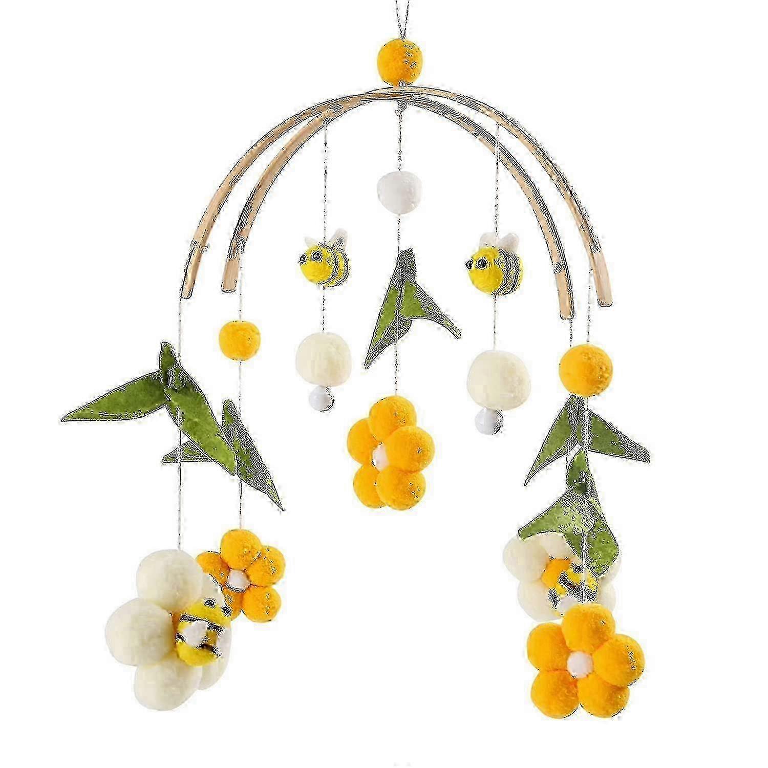 Mobile Baby Wooden + Wool Ball, Fresh Flowers And Bees,newborn Gift For Baby (bee)