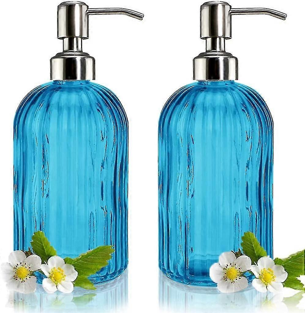 Soap Dispenser - 13.5oz Glass Dish Hand Soap Dispenser With Golden Pump Compatible Kitchen Bathroom, Lake Blue-i