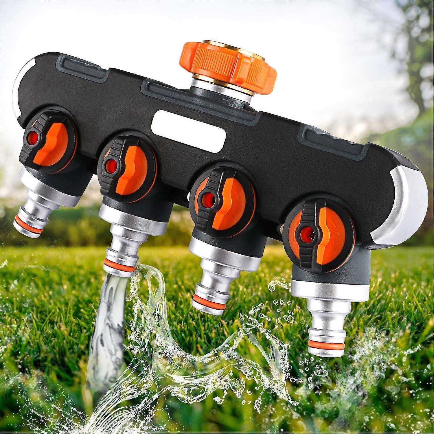 4 Way Watering Distributor, Hose Watering Distributor, Adjustable and Lockable Water Flow, Distributor for Garden Irrigation (European 3/4 Thread)