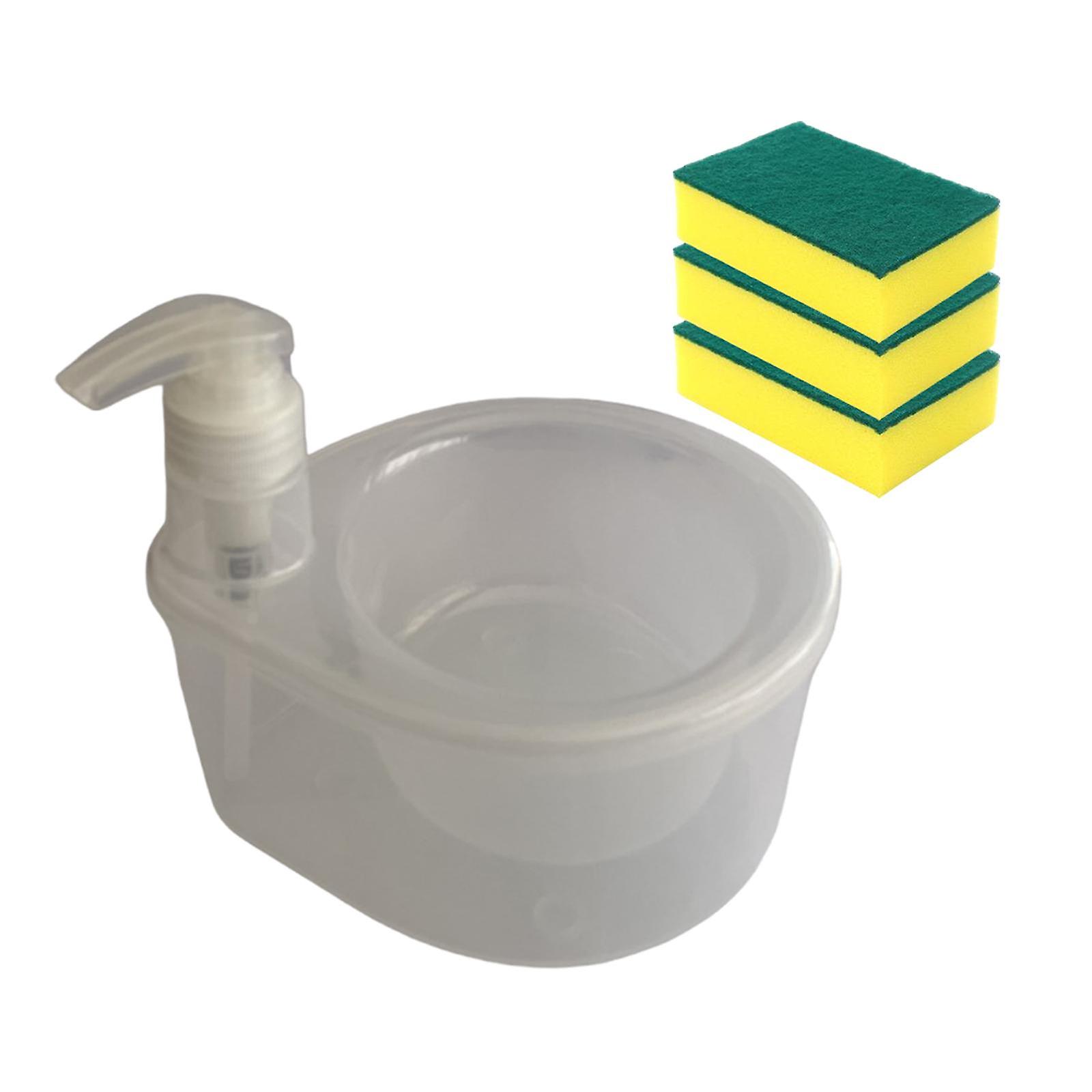 2 in 1 Liquid Soap Dispenser, Refillable Soap Pump Dispenser with Scrubber Holder for Bar Bathroom Cafe Hotel