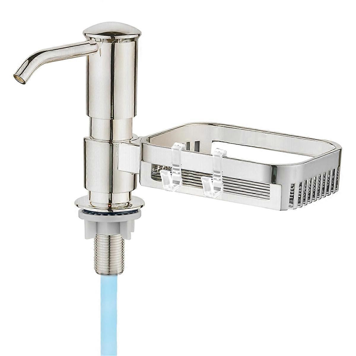 [No need more messy refills]No more crawling under the sink. Our elegant sink soap dispenser comes with a 1m tube that goes directly into a large dish soap bottle, you can skip the frequent refill process. [With Sponge Holder]The sponge holder is designed to conveniently place small items and keep the kitchen tidy. The sink soap dispenser set made of sturdy ABS plastic. The Brushed Nickel makes it to and rust. [Good suction power]Newly upgraded product structure. Our sink soap dispenser not leak every time the pump is pressed. Even if you don't use it for half a month, there be no backflow. [Easy to install]The extension tube and pump are already connected, and you only need a few minutes to complete the installation by yourself..(Fits 1 to 1.57 inch Hole) [Multi-purpose use]The kitchen sink soap dispenser With Thicken thread shank fits most countertops. Suitable for liquid soap, lotion or detergent in kitchen and bathroom. Pump and sponge holder can rotate 360 degrees all directions. Color:Silver Material: ABS Package Contents: 1 x Kitchen Soap Dispenser Only the above package content, other products are not included. Note: Light reflection and different displays may cause the color of the item in the picture a little different from the real thing. The measurement allowed error is +/- 1-3cm.
