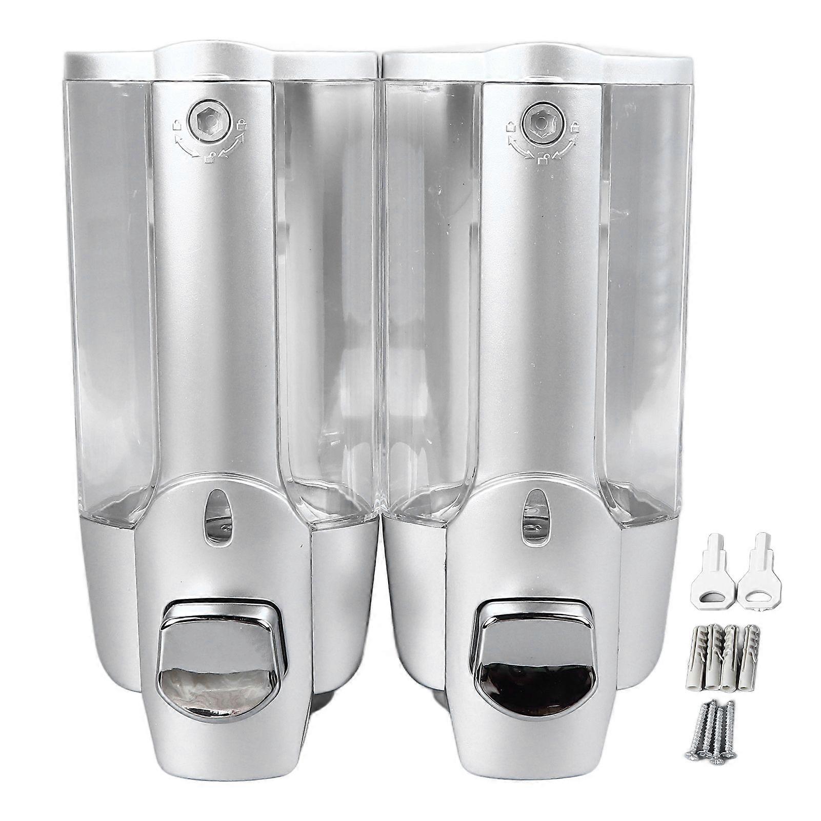 Double Head Soap Dispenser Wall Mounting Press Type Soap Liquid Distributor for Household Hotel Use Silver