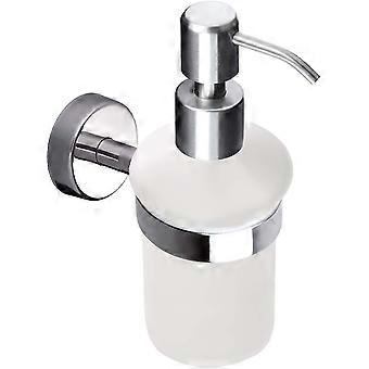 موزع وحامل صابون سائل ، زجاج بلوري ، مثبت على الحائط ، تشطيب مصقول من الفولاذ المقاوم للصدأ