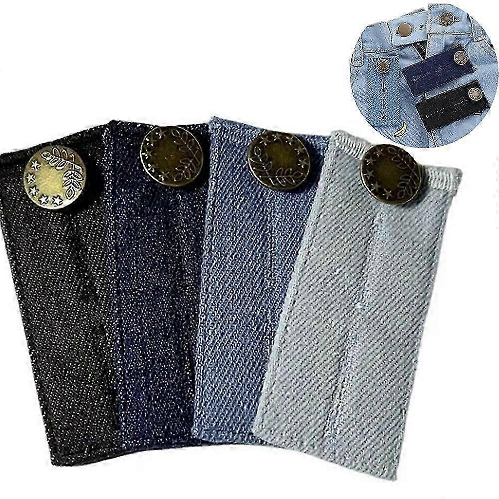 (4pcs), Jeans Extension Button, Buttonhole Extenders, Trouser Extender, Buttonhole Elastic, Cotton, 8.3 cm, Color, Adjustable, Sewing Accessories, For Durable Fabric: Made of strong denim cotton, these waist extenders will retain their shape and durability without stretching or weakening over time Adjustable Button: With 2 slots, these extenders require no sewing and can instantly increase the waist size of your pants by 0.5 to 2 inches. They also come with 4 different colors to fit different pants Comfort Fit: Designed to be discreet and non-irritating, these waistband extenders provide all-day comfort without showing through your clothes 4 Colors: Available in 4 colors for casual pants, can work with different colors of jeans, these waist extenders will seamlessly match your wardrobe Feature: Suitable for men, women and jeans, slacks, trousers, skirts, etc. Not easy to wear, durable and sturdy, can be used for a long time. Disassemble and reusable button extender free, pant extender suitable for all your pants and shorts. The button extender made of premium metal, pant extender is sturdy, durable and comfortable. They can provide extra space for your pants, thus providing a more comfortable wearing experience