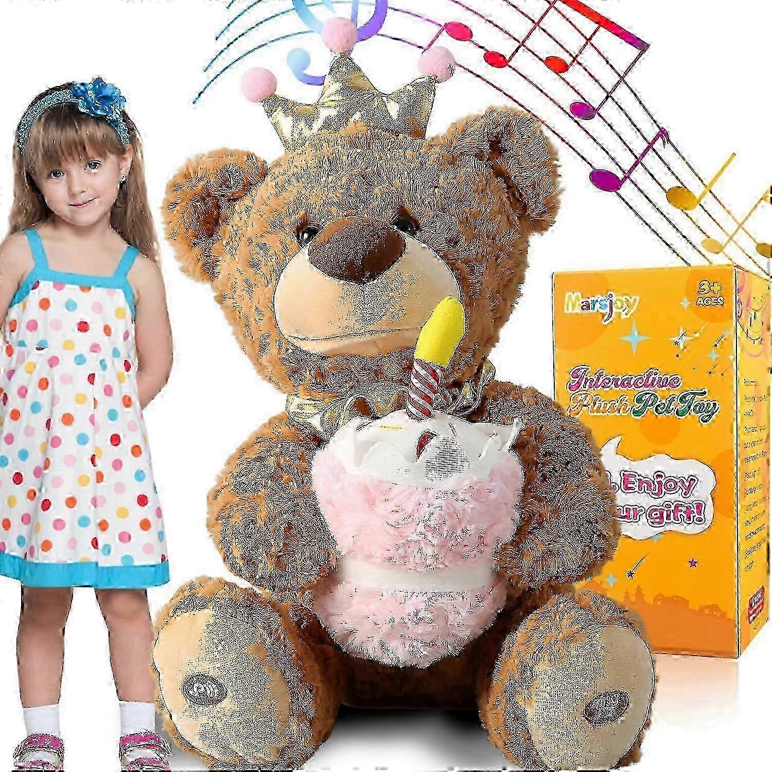 Musical Happy Birthday Teddy Bear with Glowing Cupcake, Animated Plush Toy Singing Dancing Talking Plush Bear Repeating