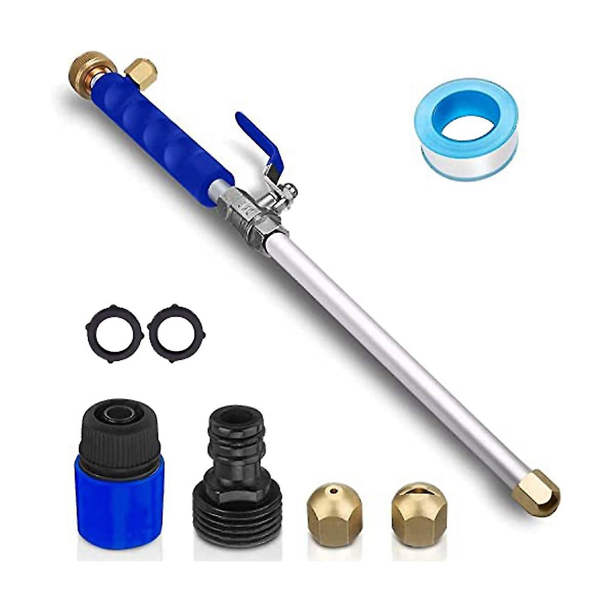The pressure is only related to the domestic water pressure, no power supply is required, and no electricity is required. If your water hose has a quick connect, our pressure washer wand connects perfectly to it. It's durable and , combined with a leak-proof design, ensures you can use it comfortably for all your cleaning, washing and gardening needs. Our hydrojet high pressure power washer can be used to clean dirt and mold build-up from wood, aluminum and vinyl shutters, concrete sidewalks, wooden decks, brick, stone, rocks, your car, truck, , boat and more. Product Name: High Pressure Washing Water Colour:As Shown Material:aluminum alloy Package Contents: 1 x Water Blue 2 x Nozzles 1 x Black Connector 2 x Spacers 1 x Tape 1 x Blue Quick Connect Only the above package content, other products are not included. Note: Light reflection and different displays may cause the color of the item in the picture a little different from the real thing. The measurement allowed error is +/- 1-3cm.