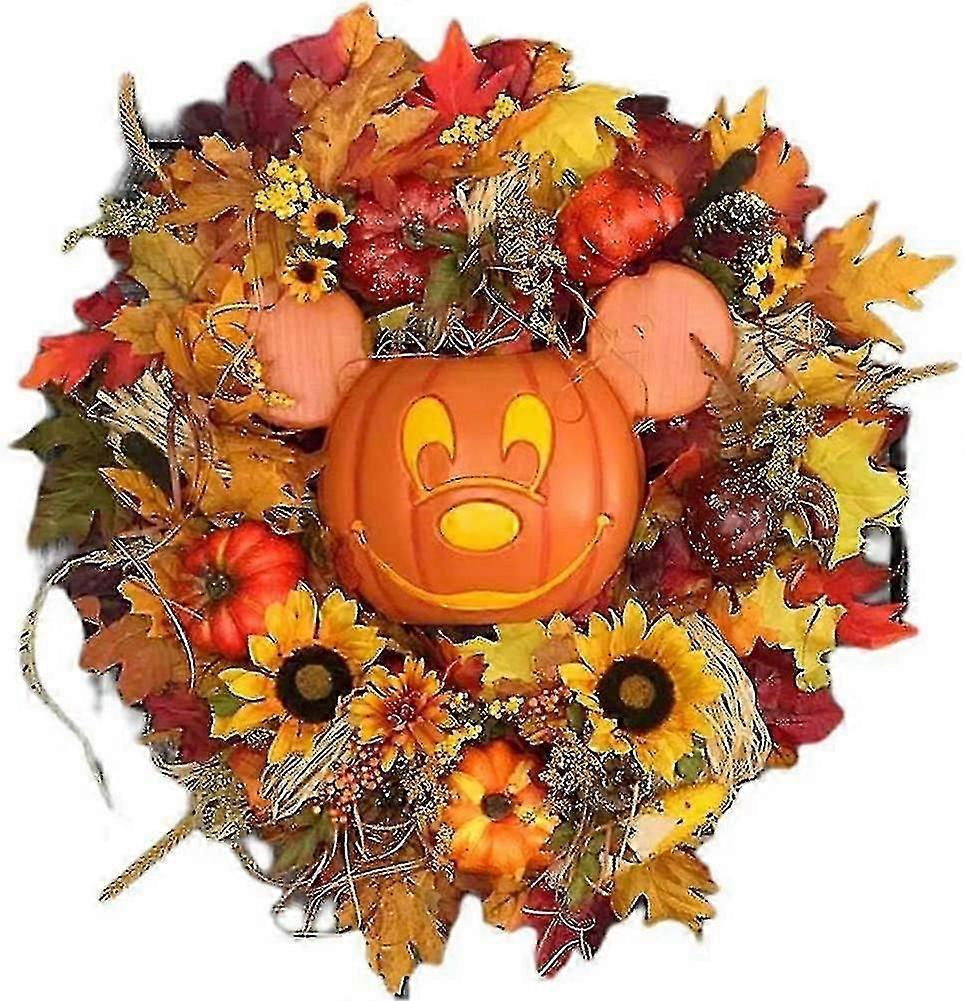 Mickey Pumpkin Wreath Decor for Halloween Xmas Door Decoration, Disney Style