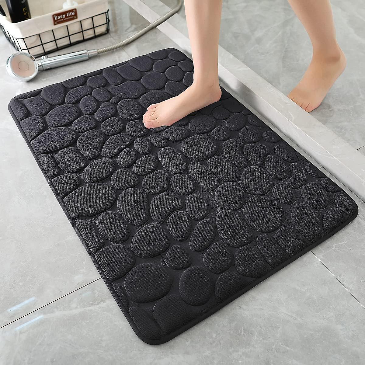 Memory Foam Bath Mat Cobblestone Bathroom Rugs Super Water Absorbent Bath Mats for Bathroom Machine Washable Bath Rugs(17 x 24,Black)