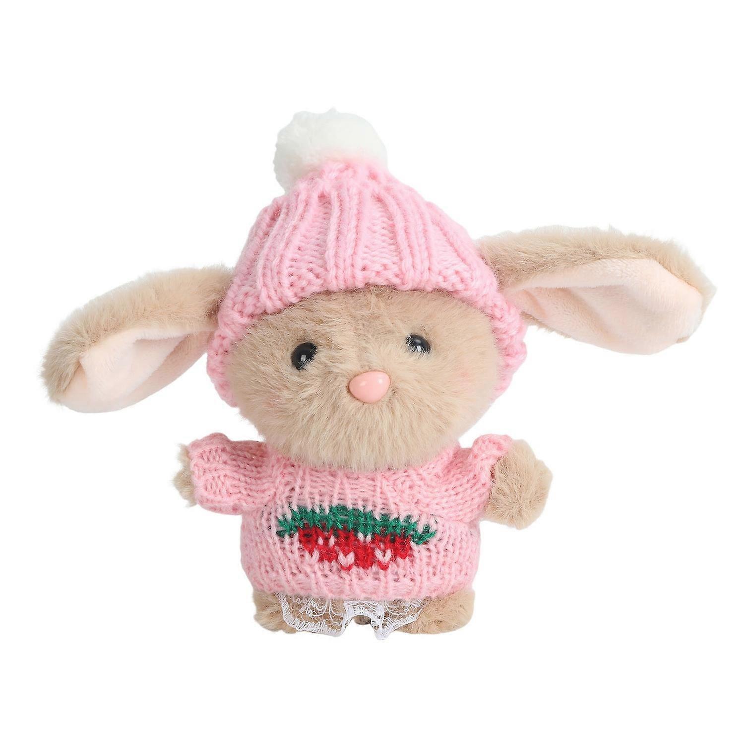 Mini Bunny Hug Easter Gift Rabbit Plush Toy with Card Knitted Hat Sweater Stuffed Animal Doll