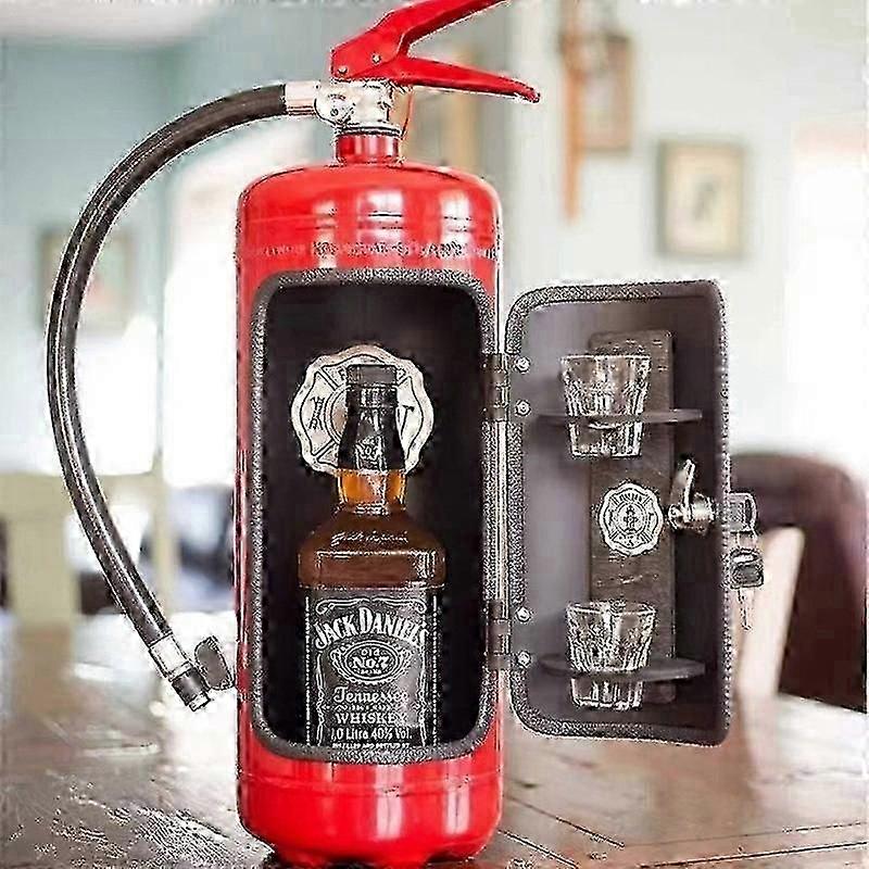 Fire Extinguisher Mini Bar - Decorative Wine Shelf with Hidden Storage - Unique Gift Idea (40x12cm)_CD