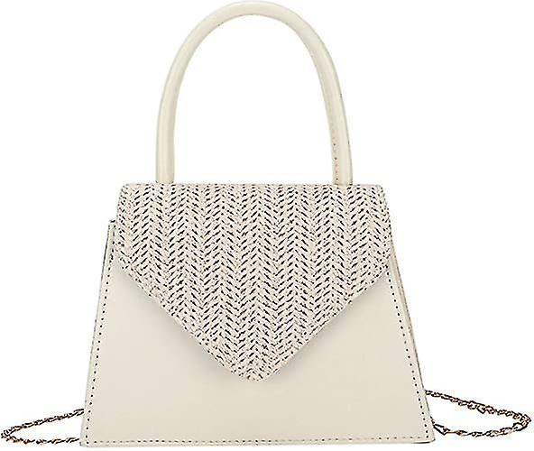 Mini Pu Leather Top Handle Bags Straw Flap Clutch Handbag Chain Crossbody Bag For Women Girlswhite