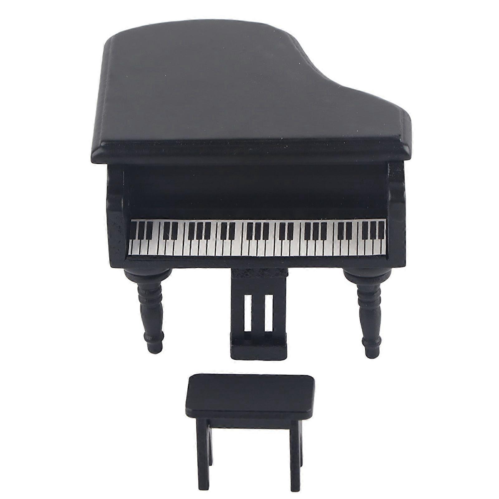 Mini Simulation Wooden Grand Piano with Stool for 1:12 Doll House Accessory (Black)