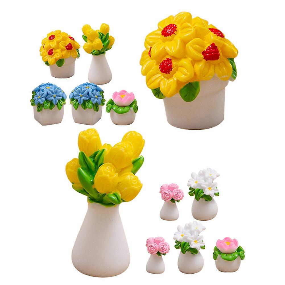 Artificial Mini Potted Plants Mini Bonsai For Mini Garden Decor Assorted Color 12Pcs
