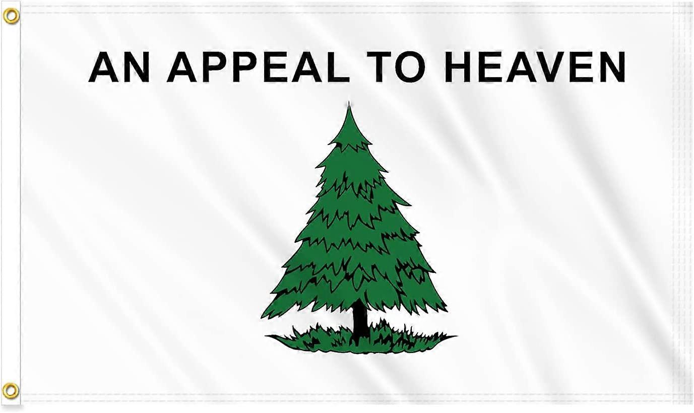 an Appeal to Heaven Flag - Show this 3x5 flags for praying for a nation, our country, liberty and for truth. An Appeal to God. 3Ply Double Side - Appeal to heaven flag is made of durable polyester. The pine tree and the text can be read correctly from both sides. Craftsmanship - The flags 3x5 outdoor is made of canvas header and 2 solid brass grommets for easy installing. And has 4 reinforced rows on the fly hem to prevent from being apart. Occasion - Suitable for home, room ,garden, lawn, office, school, truck. Anywhere you want to show. Proudly fly this flag outside your home or hang in a window for all the world to see.