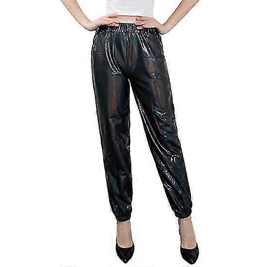 Women Pants High Waist Glossy Elastic Waist Ankle-banded Slim Fit Clubwear Stage Performance Fancy Colors Hip Hop Harem Trousers