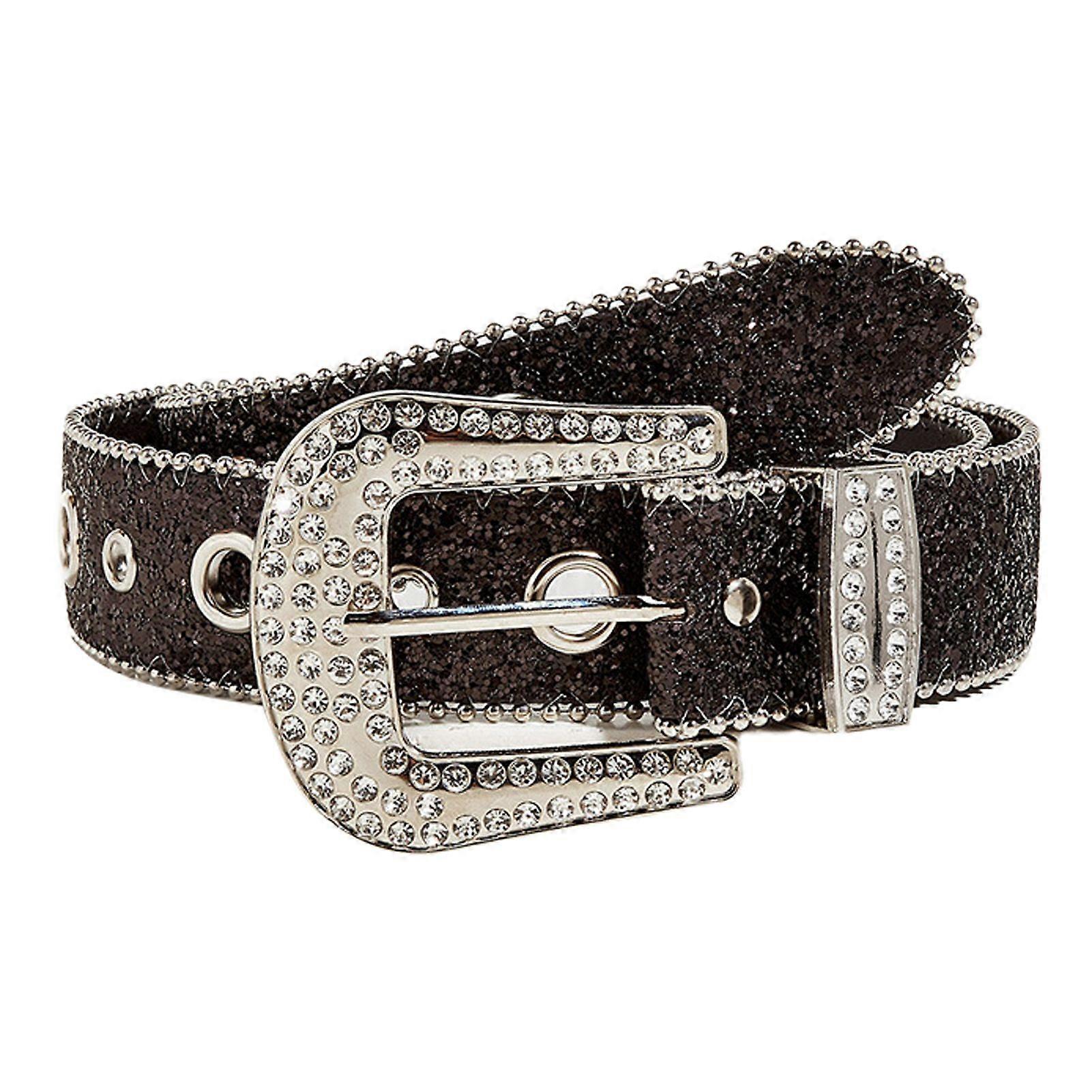 Women Jeans Belt Shiny Rhinestones Multi Holes Adjustable Length Waistband with Sparkling Buckle Wide Alloy Belt