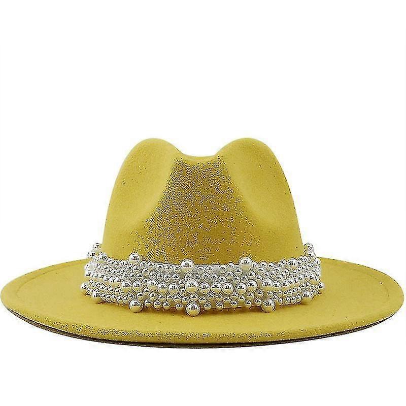 Women Men Wool Fedora Hat With Pearl Ribbon Gentleman Elegant Lady Winter Autumn Wide Brim Church Panama Sombrero Jazz Cap 60cm