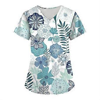 Women Nurse Uniform Floral 3D Print Tops V-Neck Pocket Medical Uniforms Nursing Short Sleeve T-shirt Tops Working Clothes