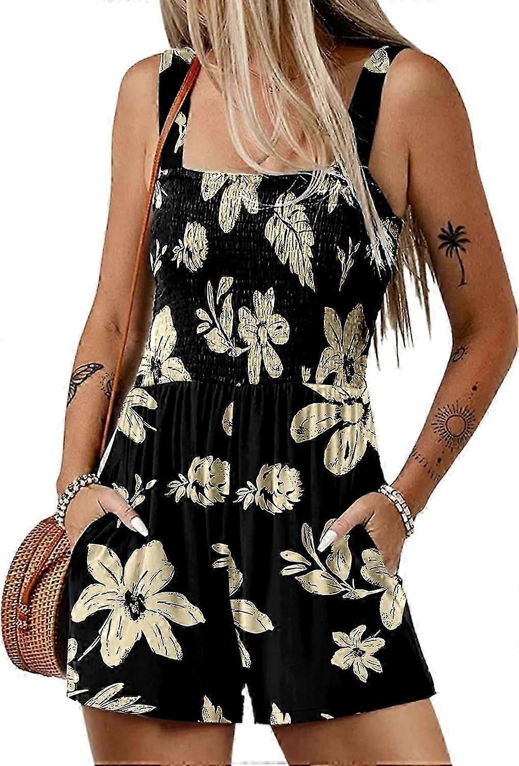 Women's Summer Casual Smocked Rompers Square Neck Sleeveless Loose Shorts Jumpsuits 2025 Beach Vacation Outfits