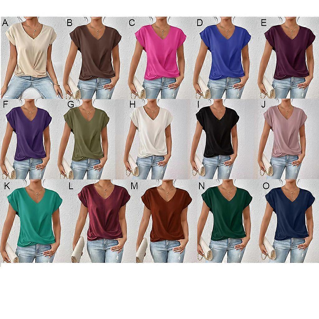 Women's Elegant V-Neck Solid Color T-Shirt Casual Short Sleeve Summer Top Loose Fit Blouse for Spring & Summer Sizes S to XXXL