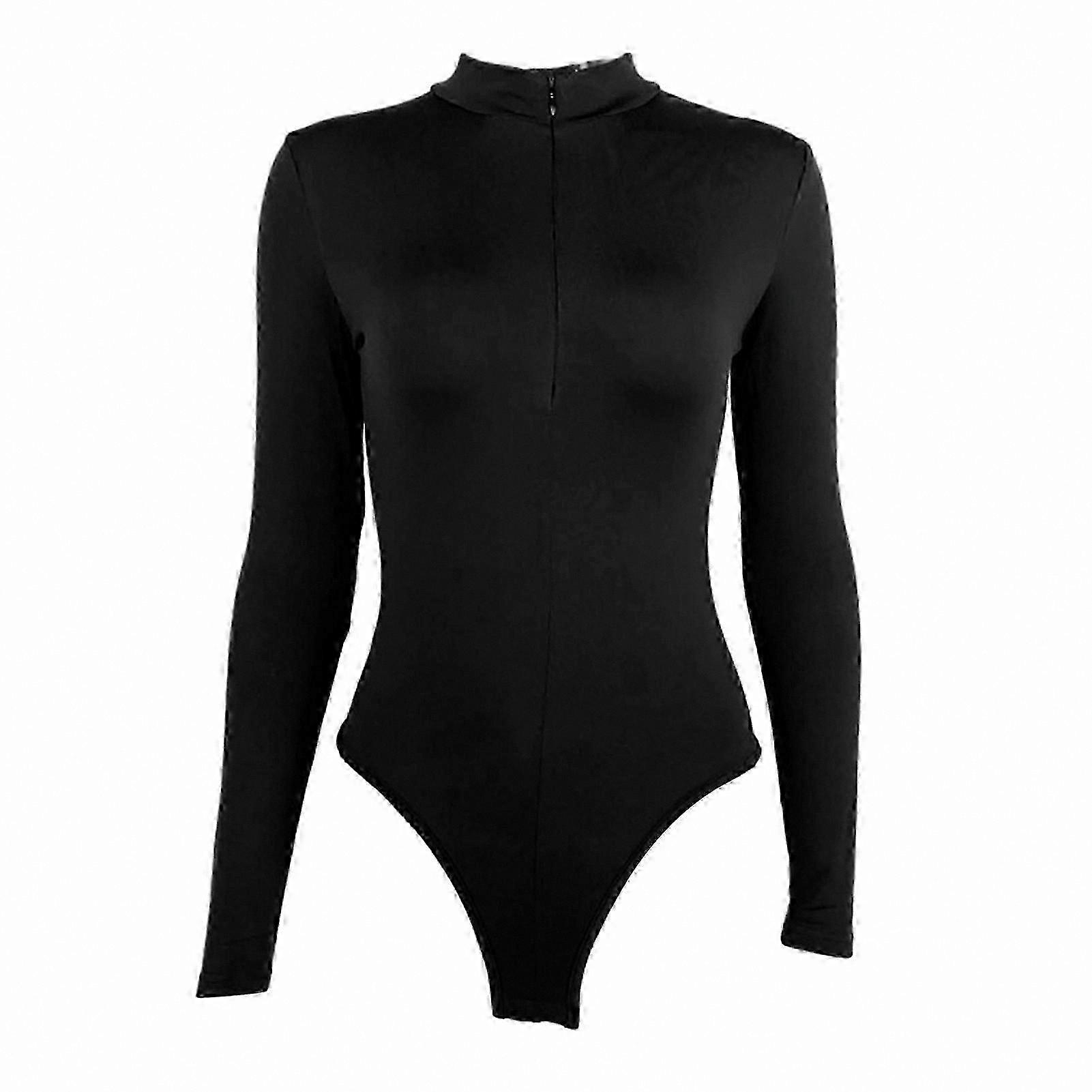 Women's Long-Sleeve Zip-Up Mock Neck Bodysuit for Casual Comfort Everyday Outfits