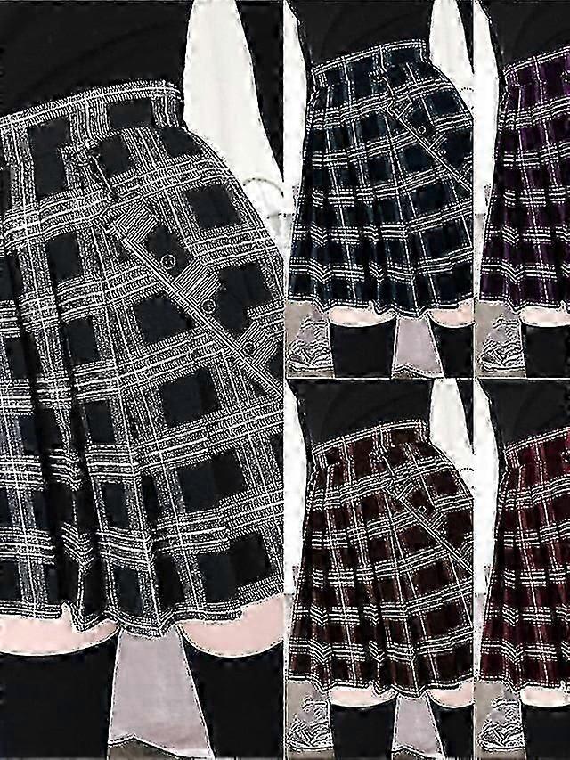 Women's Skirt Overalls Plaid Skirt Mini Poly&Cotton Blend Lake blue Wine Black Purple Skirts Summer