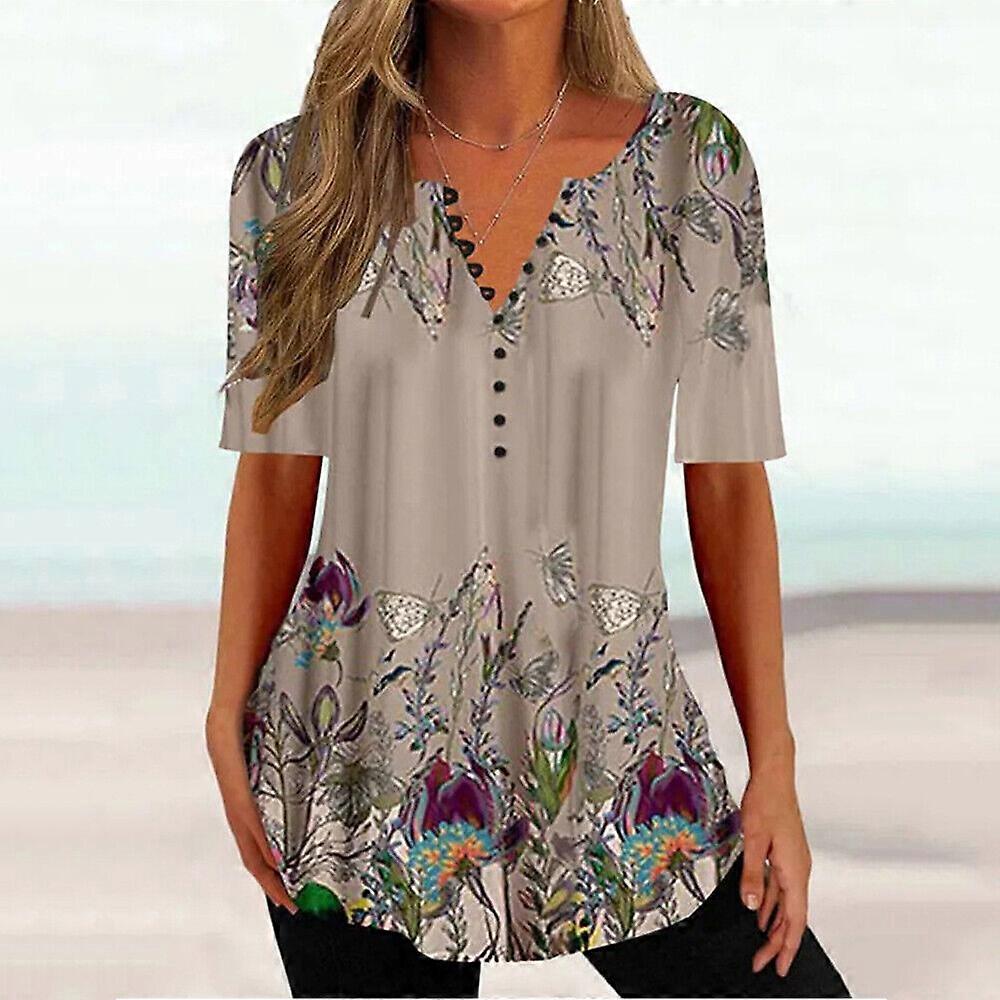 Women T Shirt Blouse Floral Short Sleeve Pullover Tunic Tops V Neck Summer Loose