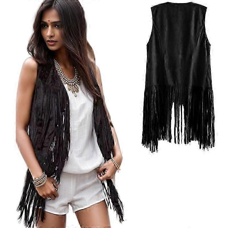 Women's Genuine Leather Fringe Vest with Suede Tassels Vintage Western Cowgirl Style Waistcoat Jacket