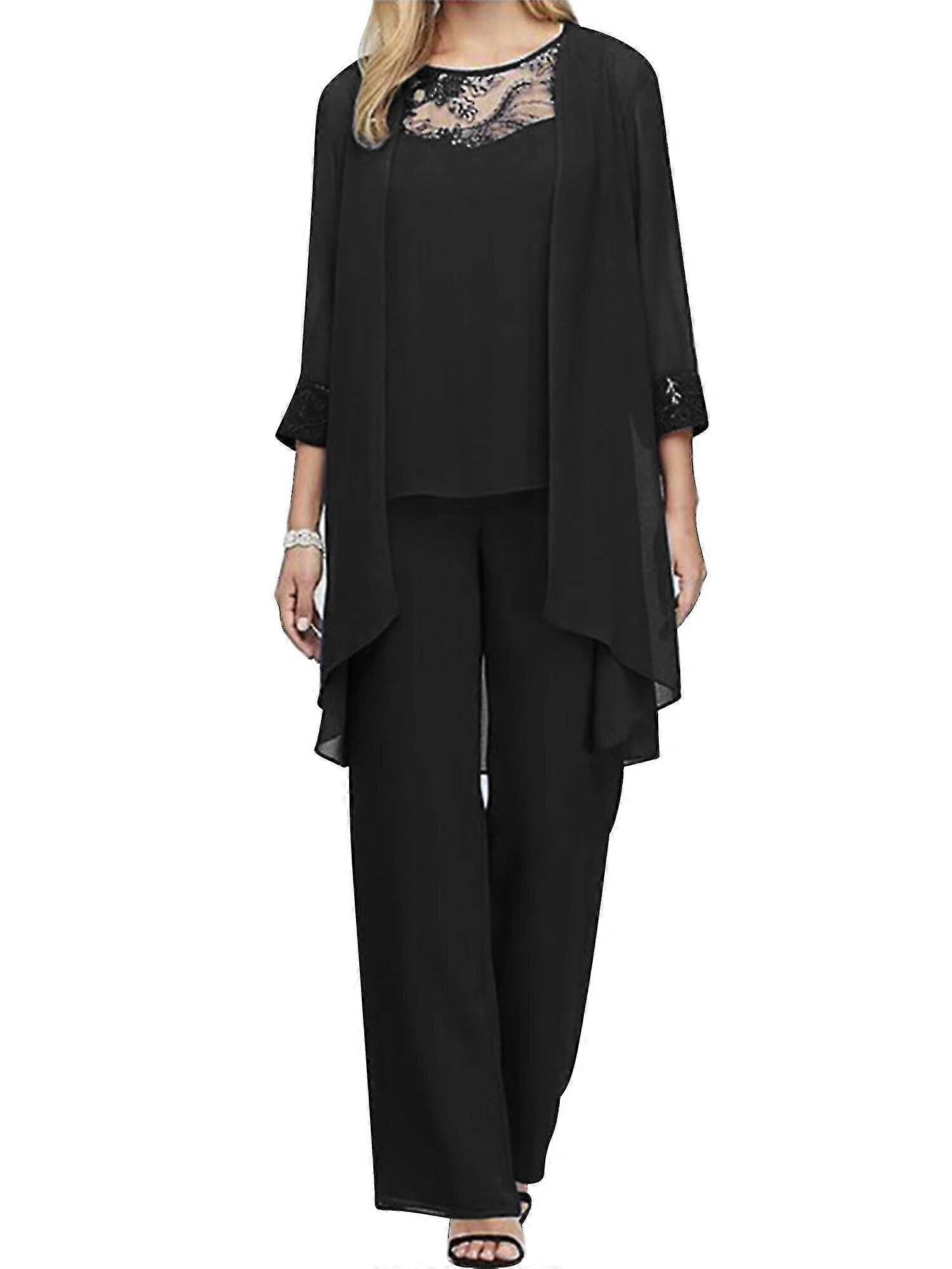 Womens Party Chiffon 3-piece Outfits Tank Top 3/4 Sleeve Draped Cardigan And Straight Pants Suit Woman's Clothes Sets