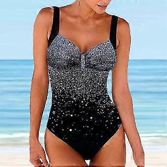Women's Shoulder Strap Swimsuit Blue Bubble Sequins Print Bikini Tankini Swimsuit well