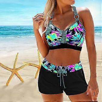 Women's Shoulder Strap Swimsuit with Multi-color Striped Printed Bikini Short Tank Top Swimsuit