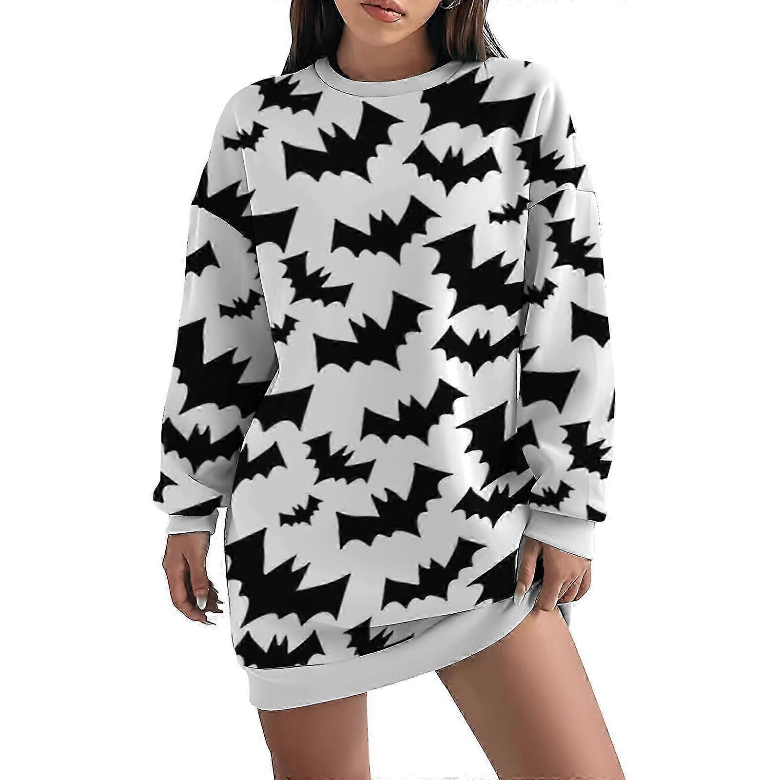 Women'S Loose Straight Dresses Round Neck Long Sleeve Pullovers Dress Halloween Theme Printed