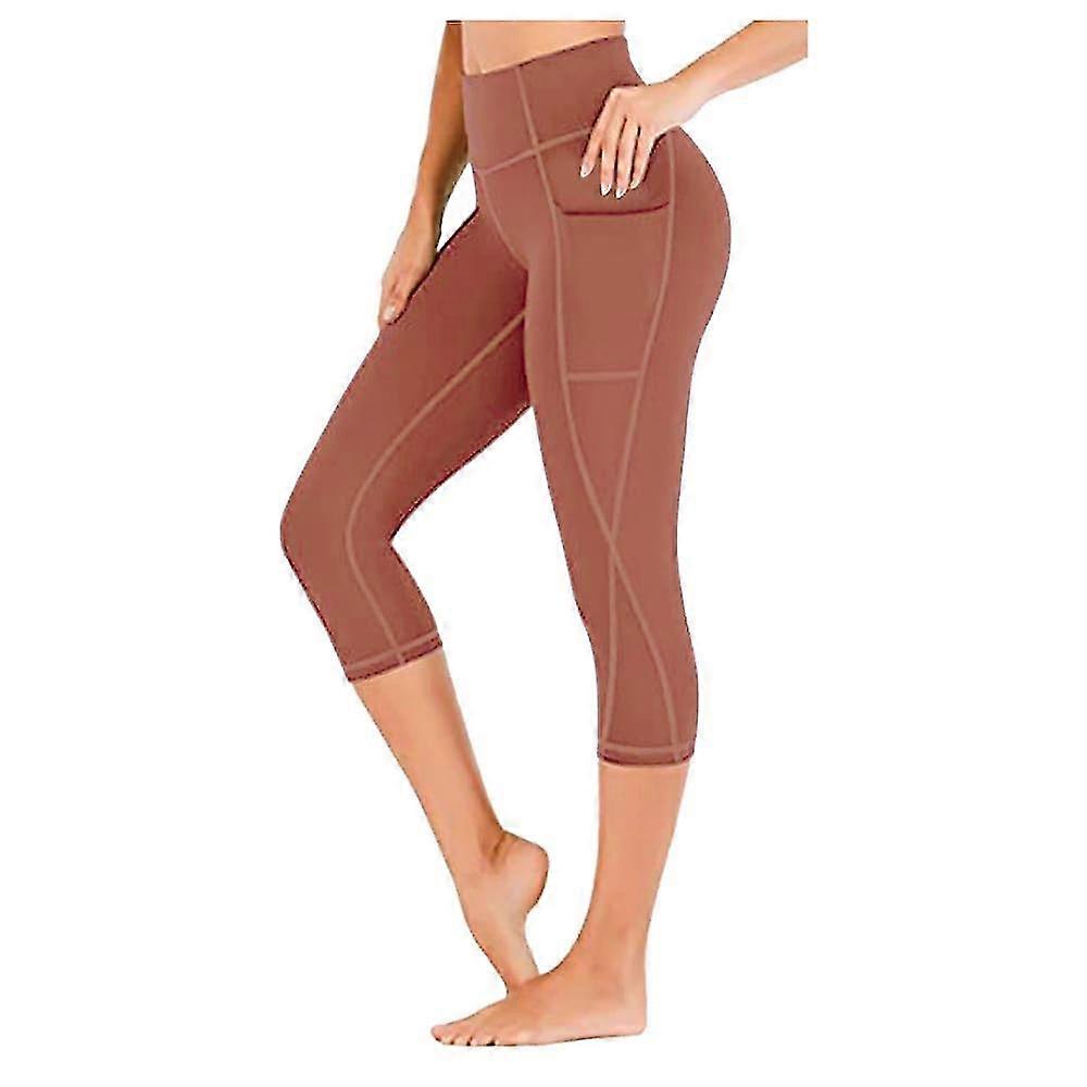Women's Capri Leggings Side Pockets Tummy Control Butt Lift High Waist Yoga Fitness Gym Workout Bottoms Black Red Burgundy Spandex Sports Activewear H