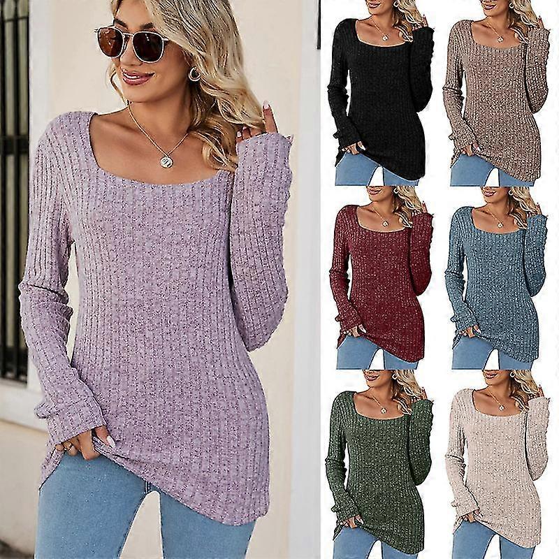 Women's Sweaters Fall 2023 Lightweight Long Sleeve Square Neck Tunic Tops