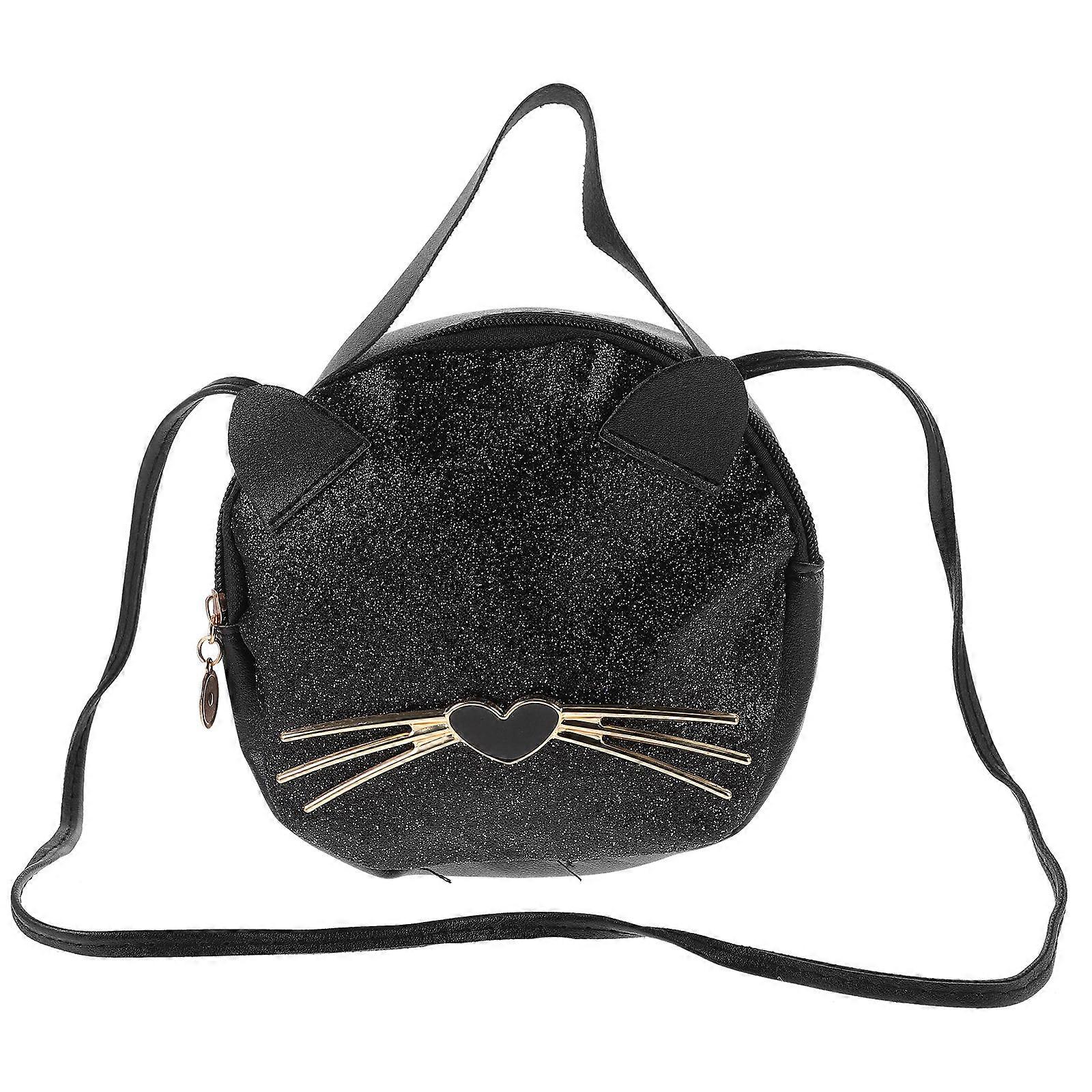Women's Cute Cat Crossbody Handbag Cartoon Cat Cross Body Bag Black 18.00X17.00X7.00CM Storage 1Pc