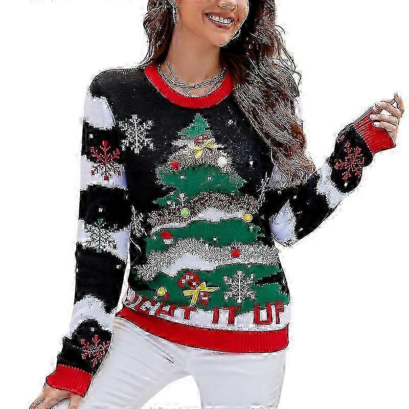 Women's Cute Christmas Sweater Long Sleeve Crewneck Funny Printed Knitted Pullover Top