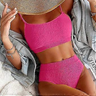 نسائي مثير أصفر على شكل حرف U بكيني عالي الخصر قطعتين ملابس السباحة