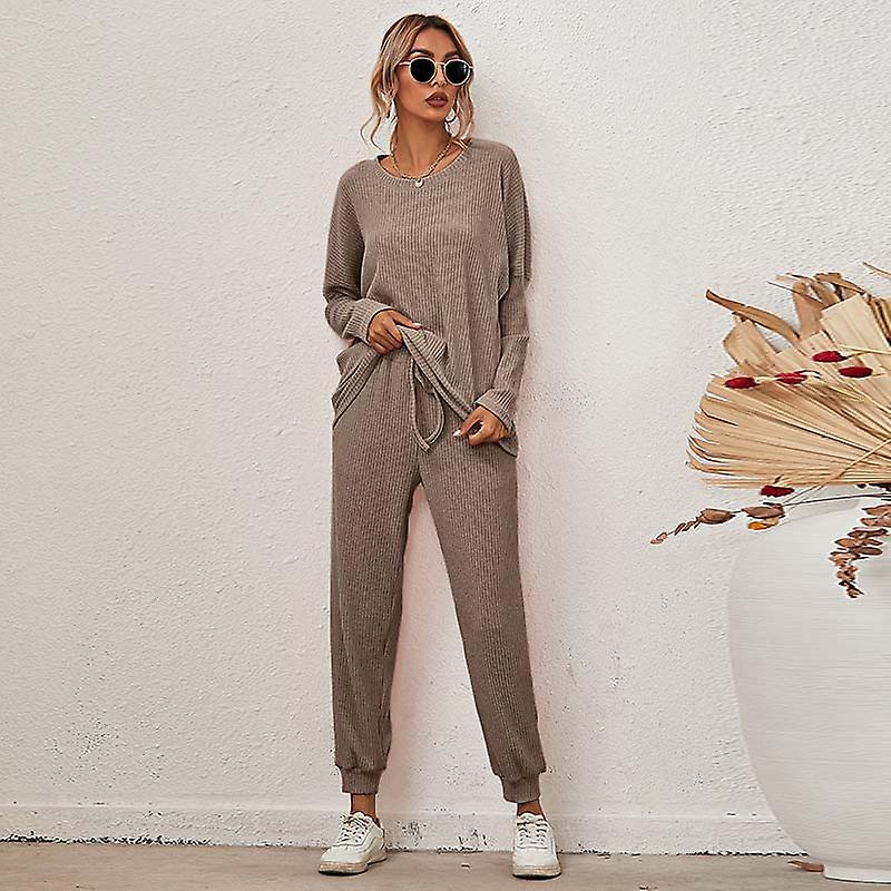 Women's Home Pajamas Set Long Sleeve Round Collar Tops + Trousers Two Piece Sets Ladies Casual Suits