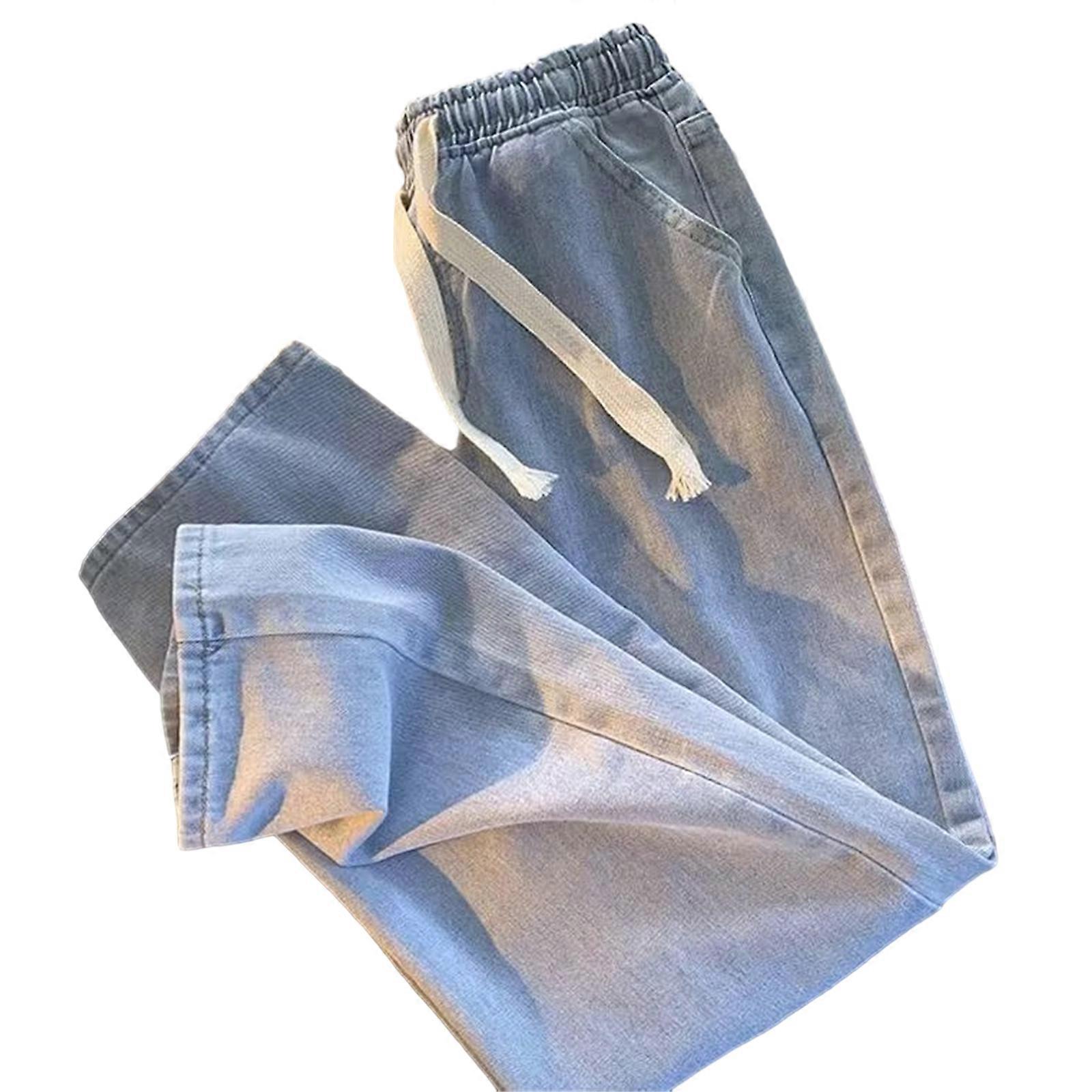 Women's Elastic High Waist Jeans Casual Straight Leg Denims Pants Casual Wide Leg Pants Trousers with Pockets Gifts Light Blue XL