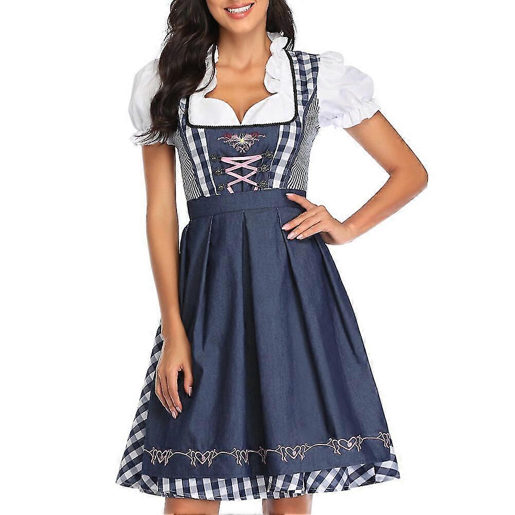 Women's Oktoberfest Dirndl Dress with Apron - Puff Sleeve Adjustable Strap Cosplay