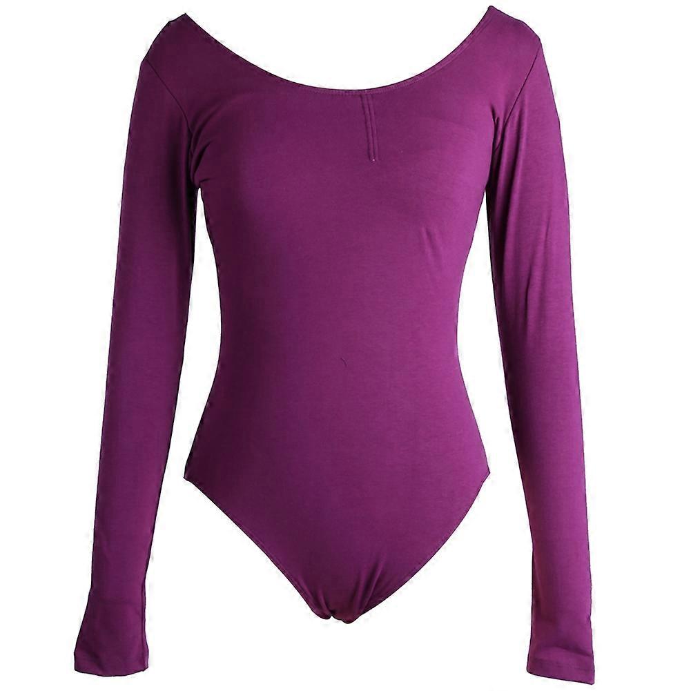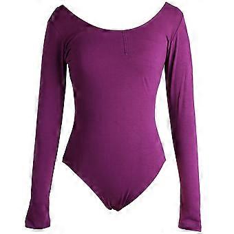 Women's Fashion Ballet Dancewear Leotard Dance Long Sleeve V Neck Gym Practice Clothes (L)