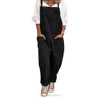 Women's Summer Overalls with Pockets, Linen Playsuit Casual Loose Romper Sleeveless Jumpsuit
